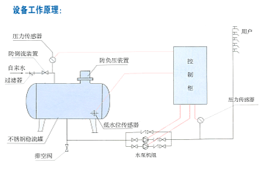 超過許可吸水壓力和流量時可在自來水管網(wǎng)壓力基礎上增壓。與從普通蓄水池吸水相比運行時可減少水泵臺數(shù)或(和)降低轉速達到節(jié)能目的。