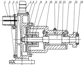 2.擰開葉輪螺坶(右旋)取下葉輪、鍵和泵蓋,再將機械密封從泵溢蓋中取下。