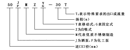 ■ JMZ、FMZ型移動式防爆酒精泵,防爆衛(wèi)生食品泵,防爆輸藥泵,酒精卸車泵,防爆自吸乙醇泵型號意義: