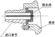 5.自吸泵的進口束節(jié)重裝時,請注意阻水閥應向正面,以便與阻水閥正面貼合保證白吸效果(見右下圖)。