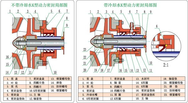 5、UHB-ZK-A系列耐腐耐磨泵,可根據(jù)用戶的要求安裝不同的密封。若無(wú)特殊要求,一般均裝配K型動(dòng)力密封。