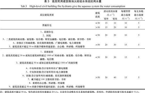 高層建筑的消防用水總量應(yīng)按室內(nèi)、外消防用水量之和計(jì)算。如果高層建筑內(nèi)設(shè)有消火栓、自動(dòng)噴淋、水幕、泡沫等滅火系統(tǒng)時(shí),其室內(nèi)消防用水量應(yīng)按需要同時(shí)開啟的滅火系統(tǒng)用水量之和計(jì)算。高層民用建筑室內(nèi)、外消火栓給水系統(tǒng)的用水量,不應(yīng)小于表3的規(guī)定。