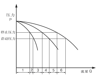 供水量小或停止用水時,水泵繼續(xù)向壓力罐補水,直至達到設(shè)定壓力之后泵停止。 |