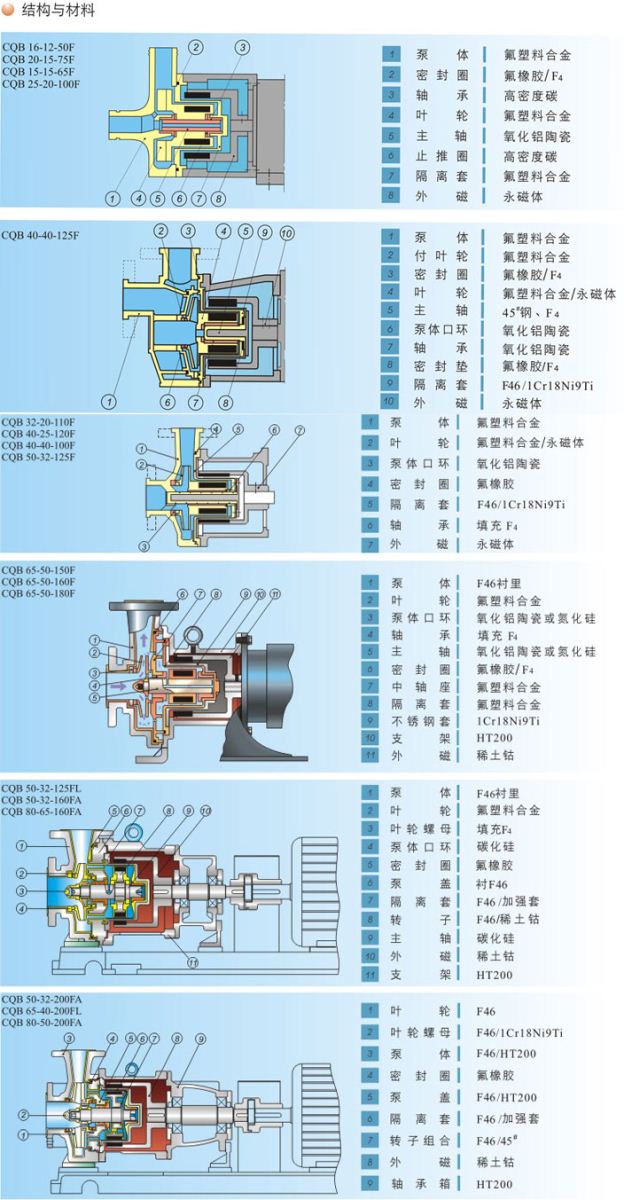 四、氟塑料磁力泵結(jié)構(gòu)與材料