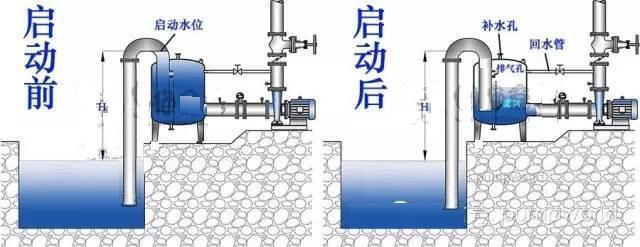 當(dāng)水泵啟動之后,水泵會先抽取真空罐內(nèi)的水,真空罐內(nèi)的液位下降,管內(nèi)形成真空,壓力低于水池液面的大氣壓力,此時水就會沿著吸入管進入真空罐。當(dāng)水泵的排液和吸入管路的進液達到平衡,真空罐內(nèi)的液位也就不會再下降,達到穩(wěn)定工作狀態(tài)。泵也就達到了額定工作狀態(tài),源源不斷地將水輸送出去(公眾號:泵管家)。