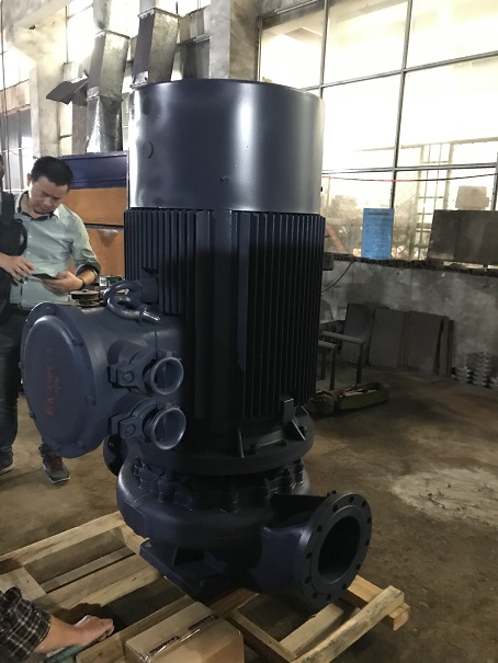 ISG200-500(I)配132KW-4江蘇大中防爆電機(jī)丹東克隆機(jī)封定制立式管道離心泵出廠 流量400立方 揚(yáng)程80米 進(jìn)出口徑200MM 電壓380V 50HZ 客戶到廠驗(yàn)收后,發(fā)貨.