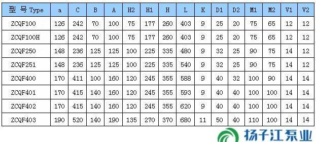 二、ZCQF型四氟自吸磁力泵外形安裝尺寸表: