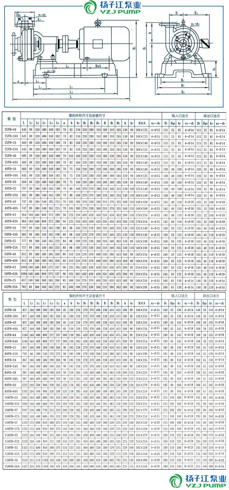 FB、AFB型耐腐蝕離心泵安裝尺寸: