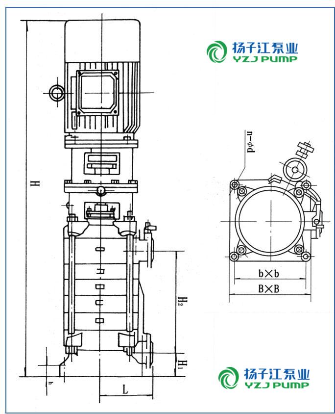 DL系列立式多級(jí)離心泵安裝尺寸圖: