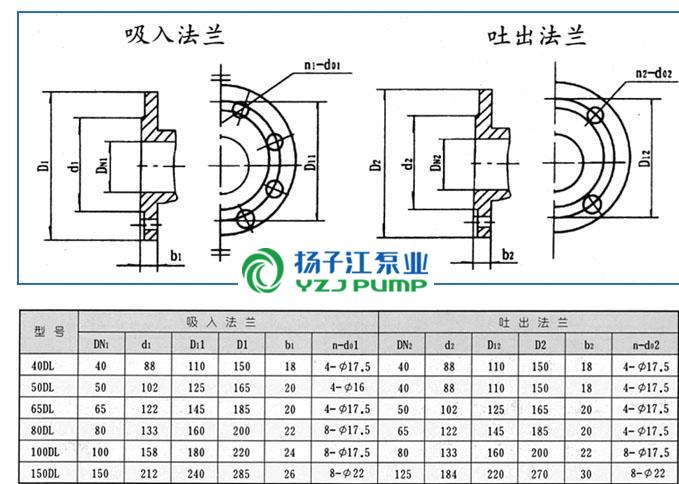 DL系列立式多級(jí)離心泵法蘭安裝尺寸: