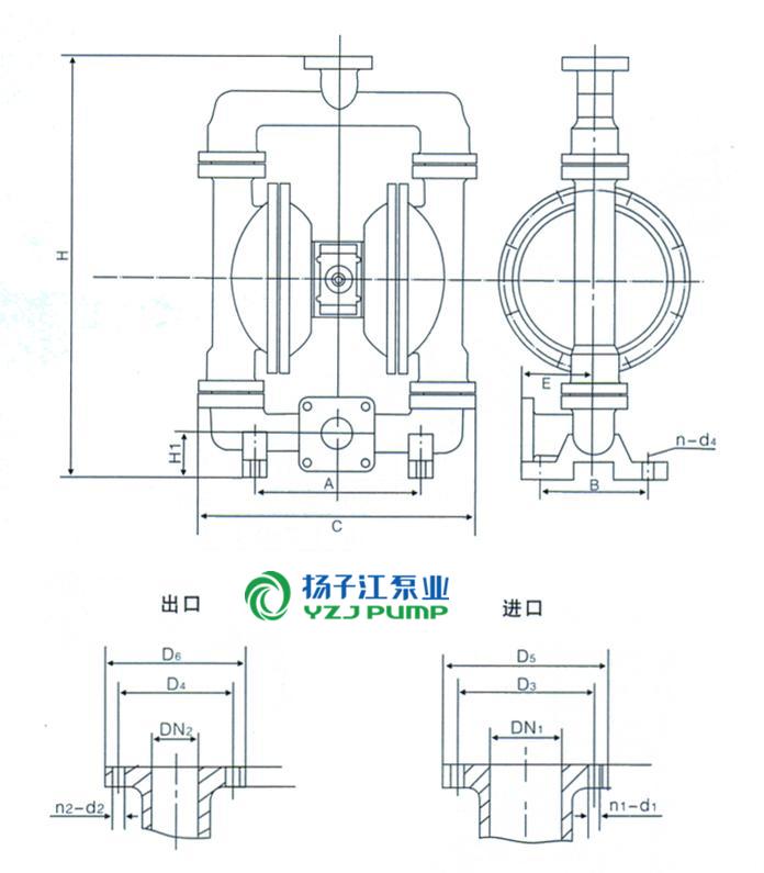 QBY系列氣動隔膜泵(安裝尺寸)