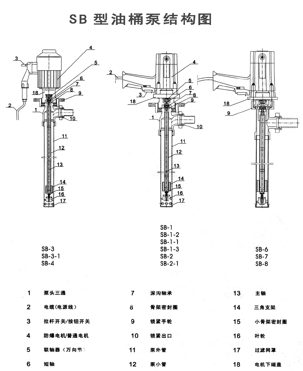 SB型電動油桶泵結(jié)構(gòu)圖: