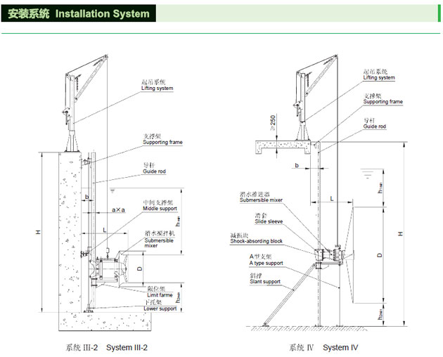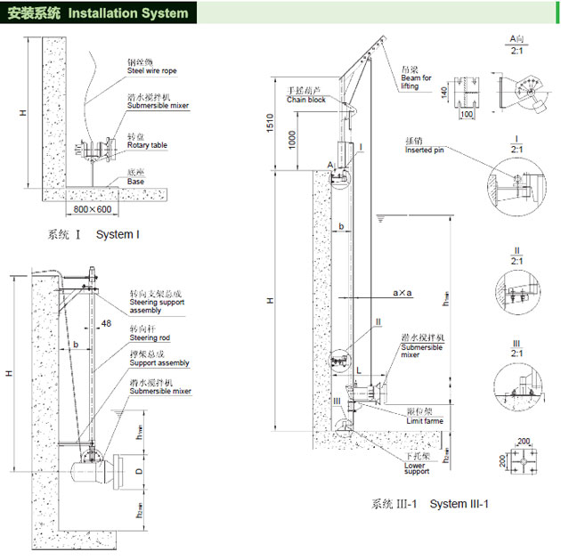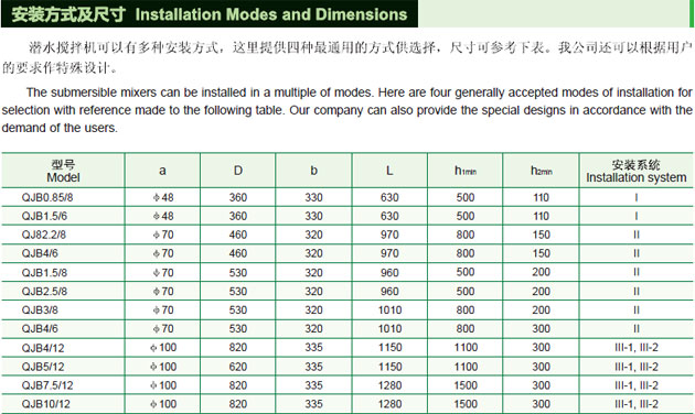 QJB型潛水?dāng)嚢铏C作為水處理工藝中的關(guān)鍵設(shè)備之一,在水處理工藝流程中,可實現(xiàn)生化過程中固液二相流和固液氣三相流的均質(zhì),流動的工藝要求。它由潛水機葉輪和安裝系統(tǒng)等組成。潛水?dāng)嚢铏C為直連式結(jié)構(gòu)。他于傳統(tǒng)的大功率電機通過減速機降速相比,具有結(jié)構(gòu)緊湊,能耗低,便于維護和保養(yǎng)等有點。葉輪經(jīng)過精鑄或沖壓成型,精度高,推力打,流線性造型簡潔美觀。該系列產(chǎn)品適用于需要固液攪拌,混合的場所。結(jié)構(gòu)簡圖如下: