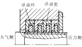 浮動環(huán)可以在軸上徑向浮動。軸向密封靠浮動環(huán)與軸的狹窄徑向間隙產(chǎn)生節(jié)流;徑向密封靠浮動環(huán)與軸上浮動套貼合(依靠壓力或彈簧力)而達到