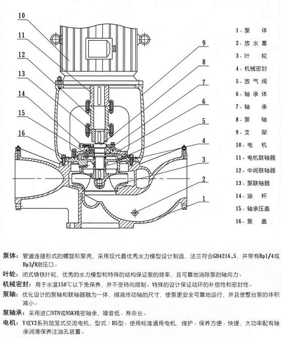 8、泵蓋結(jié)構(gòu)設(shè)計獨特,只要卸下硬性中間聯(lián)軸器、泵蓋螺母,即可十分輕松便取出軸承座。泵蓋、泵軸、葉輪等給合件,進行更換機械密封和葉輪,而不必拆卸電機、泵體和管道,維修方便快捷。