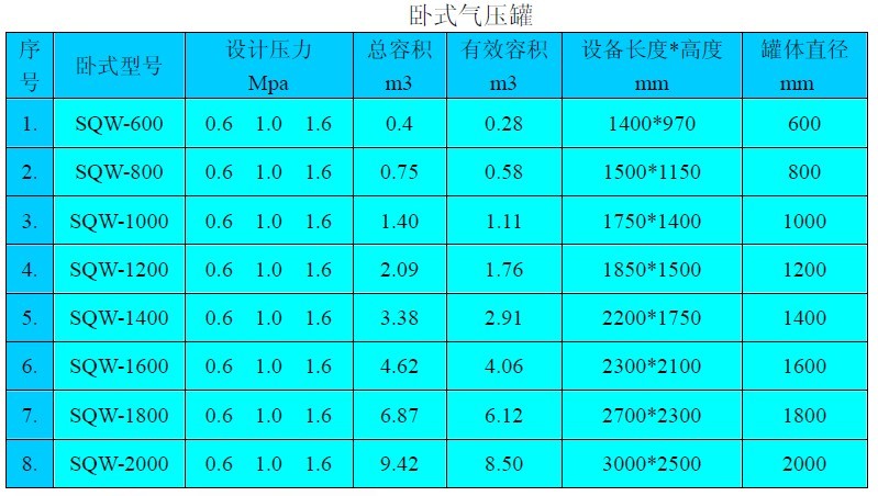 設(shè)計(jì)壓力:0.6Mpa ;1.0Mpa ;1.6Mpa