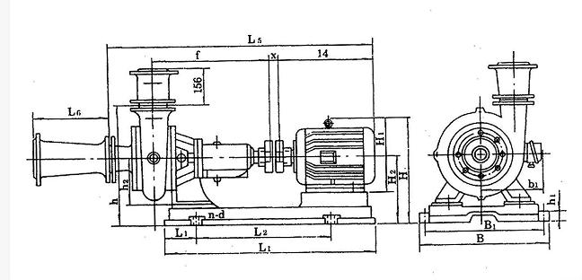泵出口垂直向上,也可裝成水平方向,本泵由彈性聯(lián)軸器直接傳動(亦可才艮據(jù)需要改用皮帶傳動)。