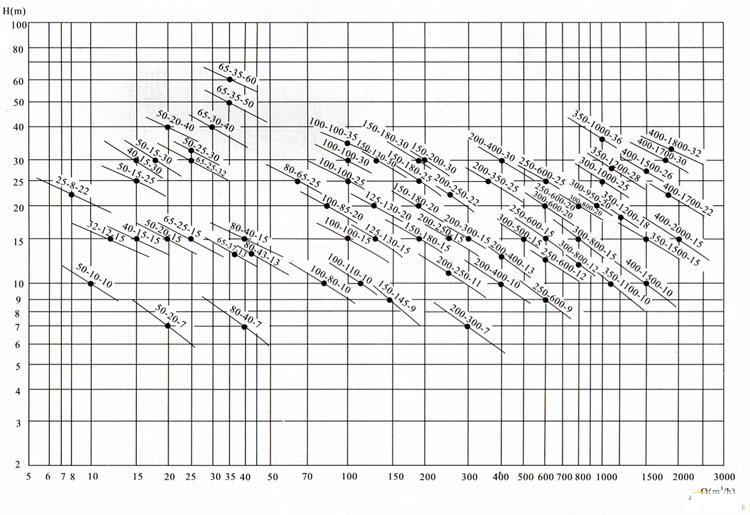 | 型號 | 口徑 mm | 流量 m3/h | 揚程 m | 功率 KW | 轉(zhuǎn)速 r/min | 效率 % |