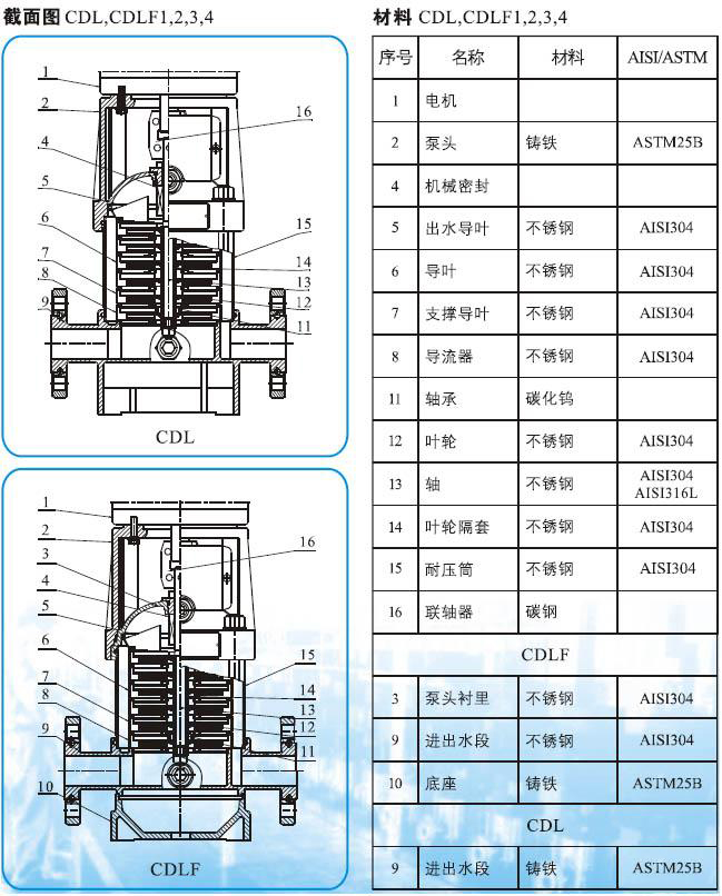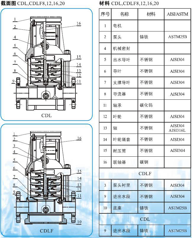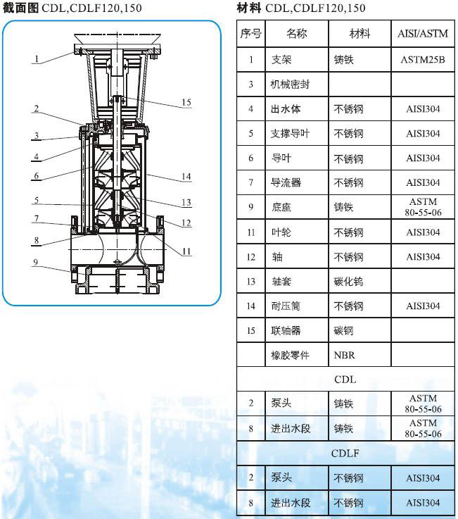 CDLF系列輕型不銹鋼立式多級管道泵(以下簡稱泵)是吸取了國內(nèi)外先進(jìn)技術(shù)而設(shè)計(jì)制造的非自吸立式多級管道泵,采用標(biāo)準(zhǔn)立式電機(jī)和快裝式機(jī)械密封,更換非常方便。泵的過流部分均采用不銹鋼(304\316)材料制成,可適用于輕度腐蝕性介質(zhì)。該產(chǎn)品可替代國外CR、CRN等同類產(chǎn)品。產(chǎn)品投放市場后,以其高效節(jié)能、質(zhì)量可靠、使用范圍廣等特點(diǎn),深受廣大用戶的喜愛。