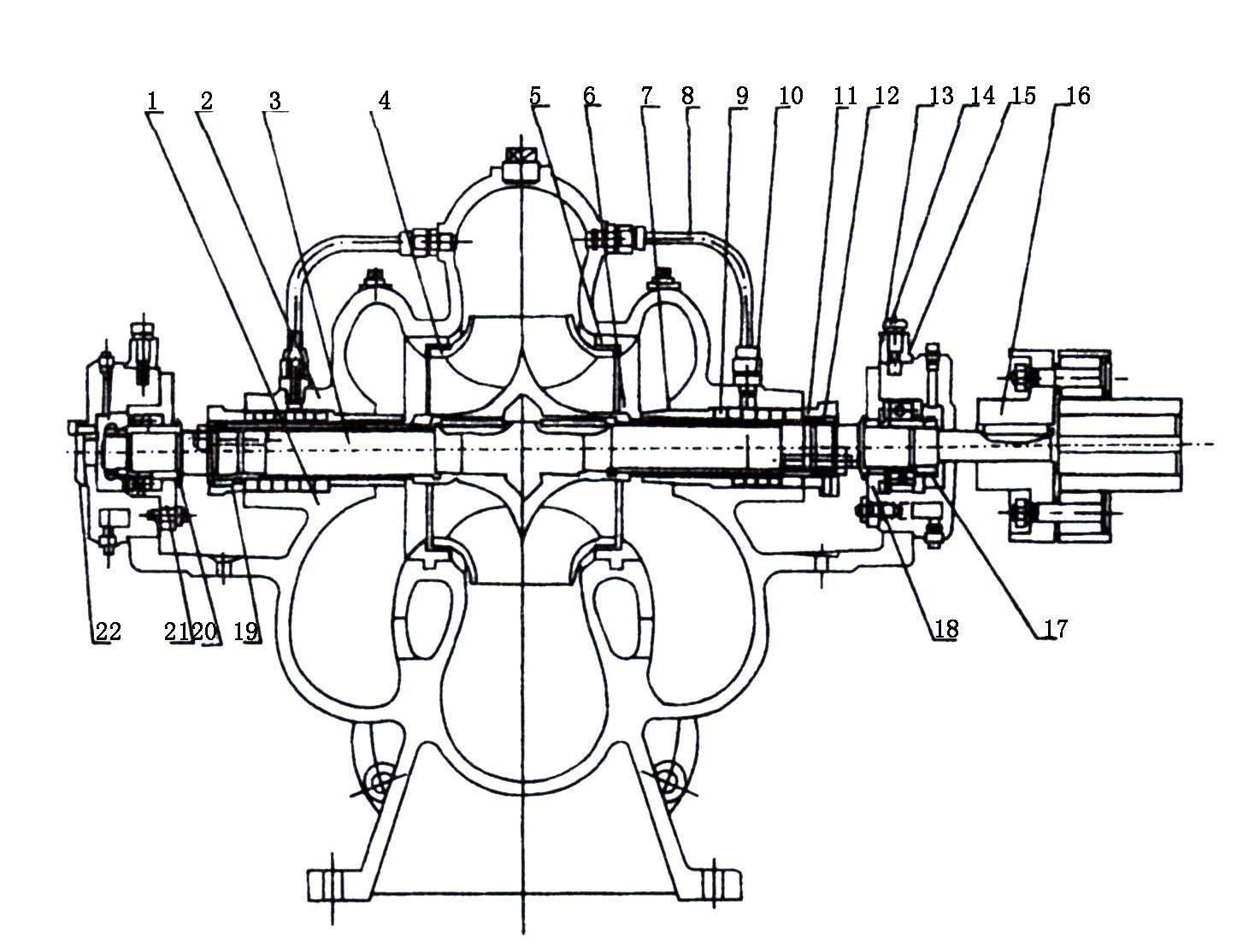 單級(jí)雙吸中開泵結(jié)構(gòu)圖