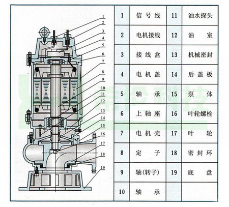 WQ型系列無(wú)堵塞潛水污水泵解剖圖