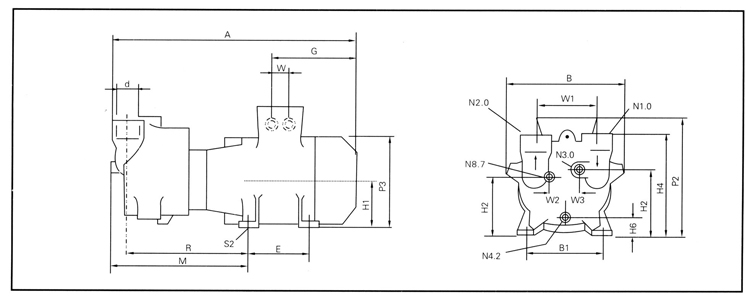 | 型號 | 曲線編號 | A | B | B1 | E | H1 | H2 | H3 | H4 | H6 | M | P2 | P3 |