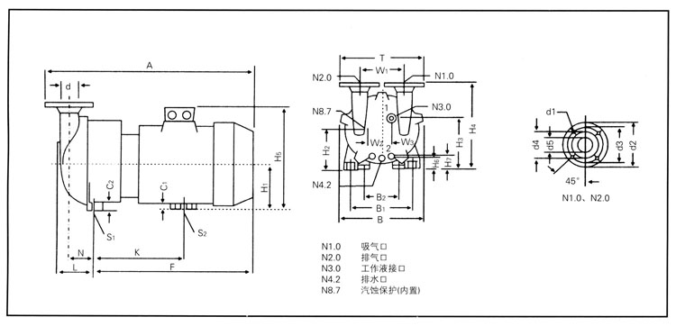 SKA系列真空泵適于抽除氣體和水蒸汽,吸氣壓力達(dá)到33mbar絕壓(97%真空度),當(dāng)真空泵在吸氣壓力低于80mbar的狀態(tài)下長期工作時,應(yīng)聯(lián)接氣蝕保護(hù)管以對泵進(jìn)行保護(hù),如配大氣噴射器,吸氣壓力可達(dá)10mbar,噴射器可直接安裝在真空泵上,作為壓縮機(jī)用時,其壓力大至0.26MPa(絕壓)。
