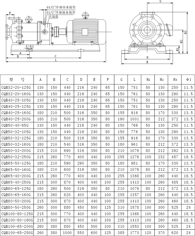 CQB-G型高溫保溫磁力泵性能參數(shù)